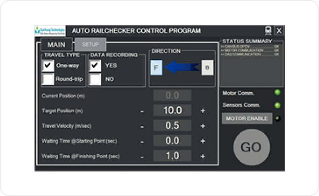 Ease of operation is another outstanding feature of RC. RC runs automatically after you set the distance (2 km max.) and then returns to the starting point. The internal motor means a user does not need to push/pull the device manually like conventional solutions, saving considerable time and effort! The user can monitor the device’s status via wifi and can remain to the side of the rails, keeping the user safe from accidents.