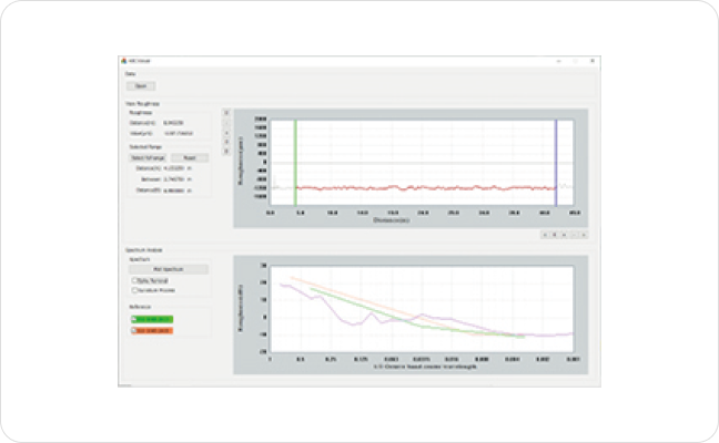 | Output | Raw displacement (㎛) vs. distance (mm) ASCII data export |